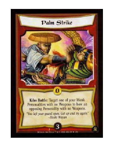Palm Strike  - Kiho Battle: Target one of your unbowed Monk Personalities with no Weapons to bow an opposing Personality with no