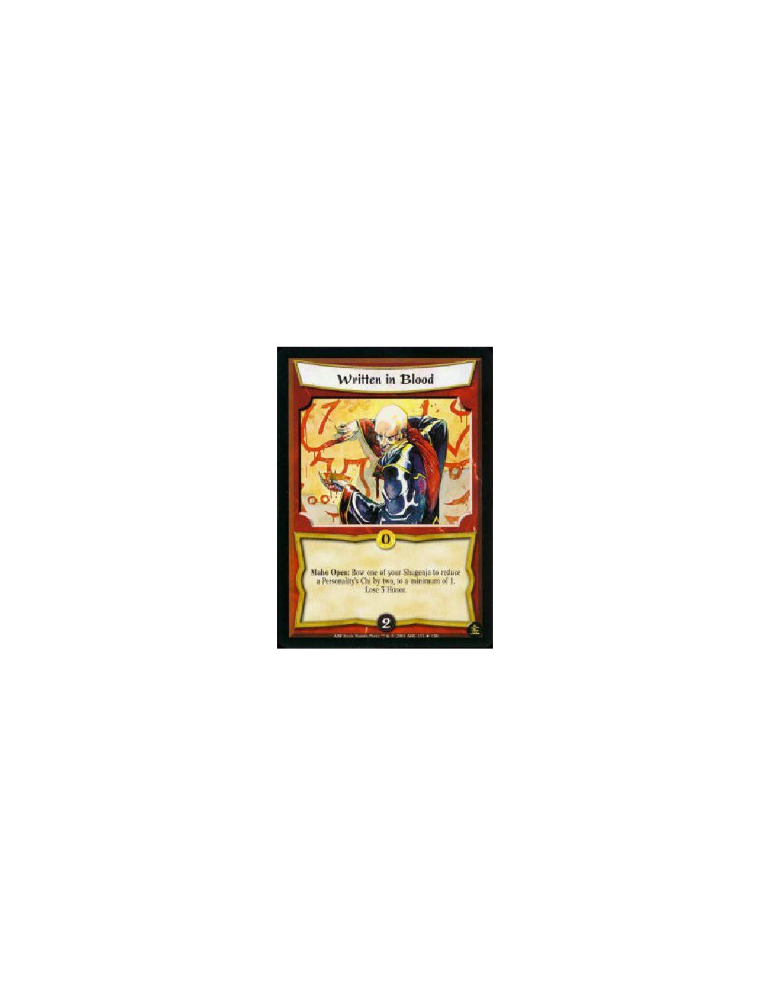 Written in Blood FOIL  - Kiho Maho Open: Bow one of your Shugenja to give a Personality -2C. Lose 3 Honor.