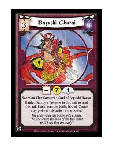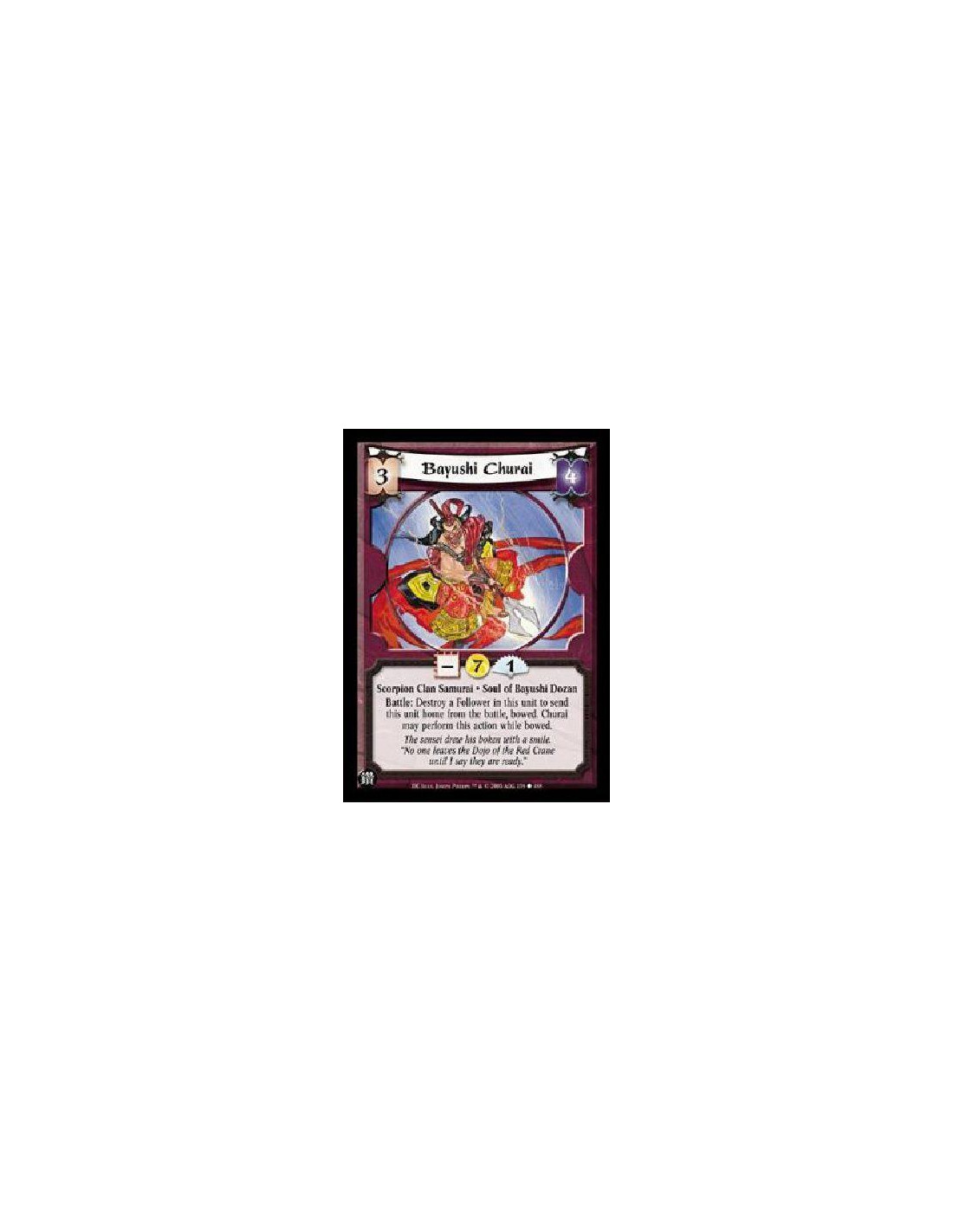 Unique Limited: Bow this Shugenja. Target any one Fate or Dynasty deck in play. Look at a number of cards from the top of the deck equal to this Shugenja's Chi. Discard one of the cards. The deck is reshuffled. Discard this spell from play.