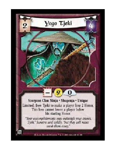 Dragon Clan • Samurai • Duelist • Justicar • Magistrate • Loyal • Scourge of the ScorpionLimited: Bow Fujimura and target a dishonorable Personality: Fujimura exposes his crimes. His controller loses 2 Honor.
