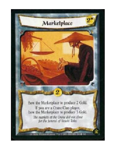 Marketplace  - Bow Marketplace to produce 2 Gold. If you are a Crane Clan player, bow Marketplace to produce 3 Gold.
