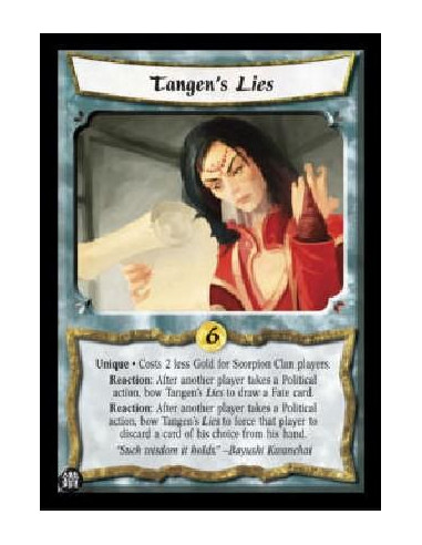 Bow this card: Produce 2 Gold. Battle/Open: Target a Personality: Negate all current Force penalties on him. Negate any cards’ effects that say he may not perform actions (this turn).