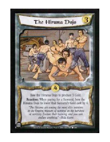 Bow the Hiruma Dojo to produce 3 Gold. Reaction: When paying for a Samurai, bow the Hiruma Dojo to lower that Samurai's Gold cost by 4.