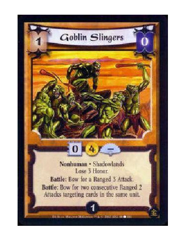 Shadowlands • Nonhuman • Goblin After this card enters play: Lose 2 Honor. Battle: Bow this card: Ranged 2 Attack.