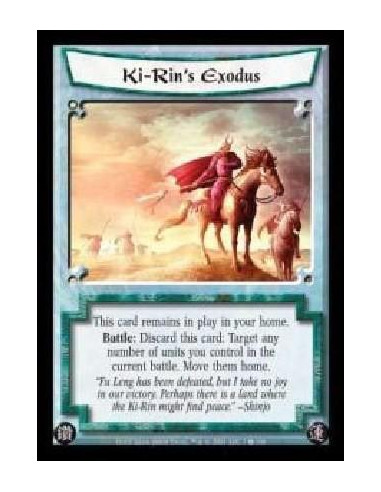 Ki-Rin's Exodus  - This card remains in play in your home. Battle: Discard this card: Target any number of units you control in