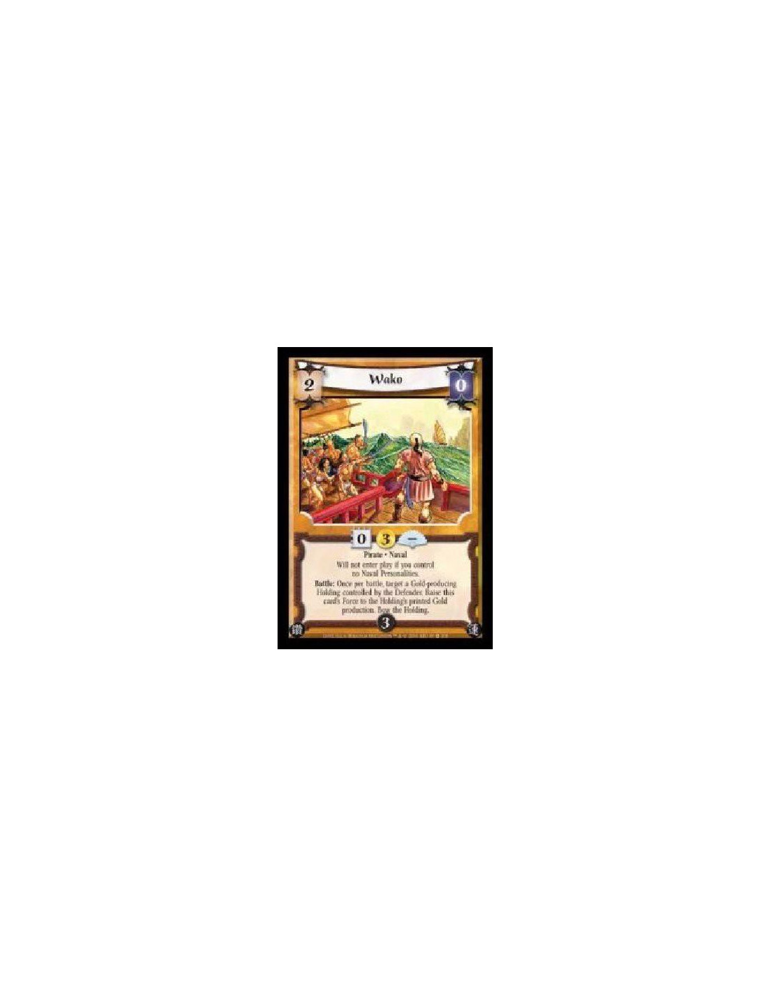 Wako  - Pirate · Naval. Will not enter play if you control no Naval Personalities. Battle: Once per battle, target a Gold-produc