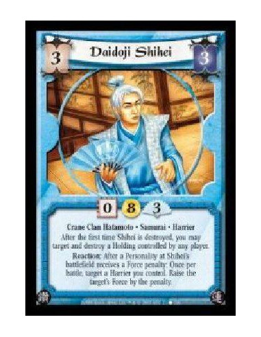 Limited: Target a Human Personality you control and discard a card: Target another player and a Crane Clan Personality in your discard pile. The other player may discard a card with equal or greater focus value. If he does not, gain 3 Honor.