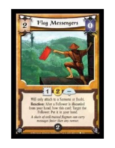 As a Focus Effect, both the winner and loser of this duel gain 1 Honor.Interrupt: If the action is another player's, after it destroys your defending Follower or Personality, give your target Personality +2F and Resilient, and gain 2 Honor. (Once per game per card, a Resilient card does not die in battle resolution.)