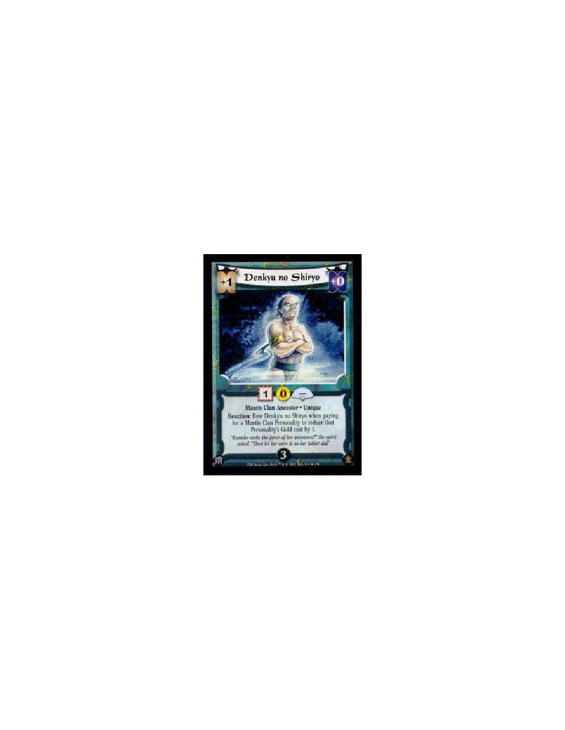 Phoenix Clan • Shugenja • Spell SeekerLimited: Any number of times per turn, bow Oyo: Look at the top card of your Fate deck. If it is a Spell, you may attach it to Oyo, ignoring Gold cost.