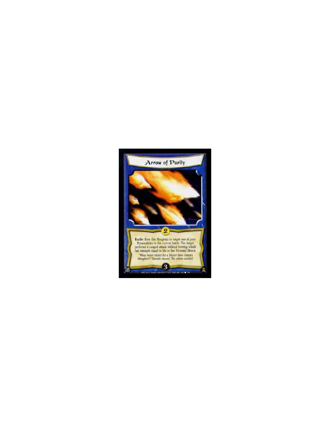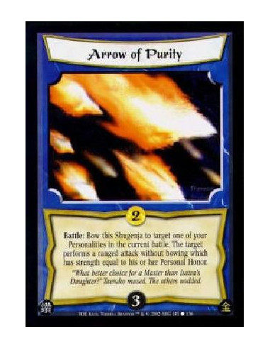 Arrow of Purity  - Battle: Bow this Shugenja to target one of your Personalities in the current battle. The target performs a ra