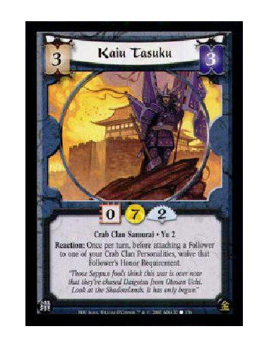 Phoenix Clan • SamuraiReaction: Any number of times per turn, after Tsukune enters a duel facing a Shugenja: Give her +3C.