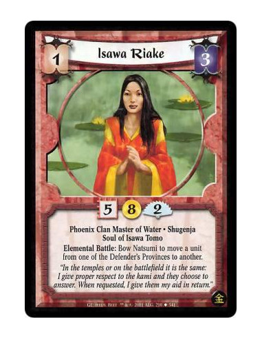 Crane Clan • Courtier. Political Reaction: After a player announces a Battle Action before the Defender’s first normal opportunity to act or pass, if Sakurako is at the current battlefield, discard the Imperial Favor: Negate the action’s effects.