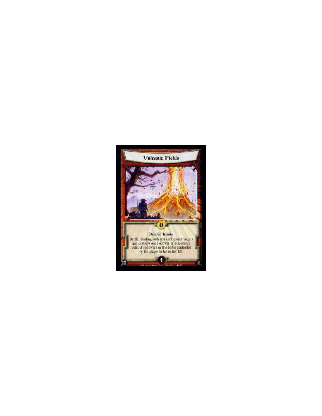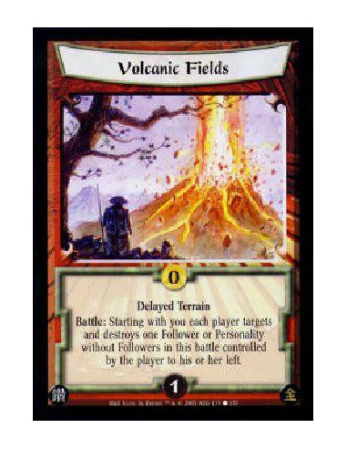 Volcanic Fields  - Delayed TerrainBattle: Starting with you each player targets and destroys one Follower or Personality without