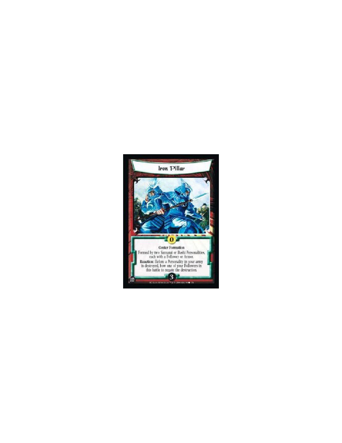Iron Pillar  - Center Formation Formed by two Samurai or Bushi Personalities, each with a Follower or Armor. Reaction: Before a