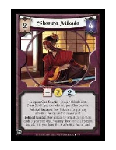 Crane Clan Samurai · Courtier · Duelist · Experienced · Unique. Political Reaction: After a Personality is destroyed as a duel result: Permanently raise the strength of each of your Provinces by 2. (GenCon 2001 Challenge Booth · Tyler Running Deer)