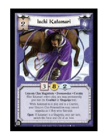 Iuchi Katamari  - Unicorn Clan Magistrate . Doomseeker . Cavalry After Katamari enters play, you may permanently give him the Co
