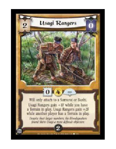 Usagi Rangers  - Will only attach to a Samurai or Bushi. Usagi Rangers gain +1F while you have a Terrain in play. Usagi Rangers