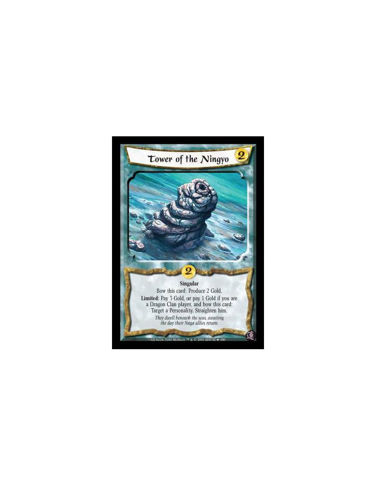 Tower of the Ningyo  - Singular. Bow this card: Produce 2 Gold. Limited: Pay 3 Gold, or pay 1 Gold if you are a Dragon Clan play