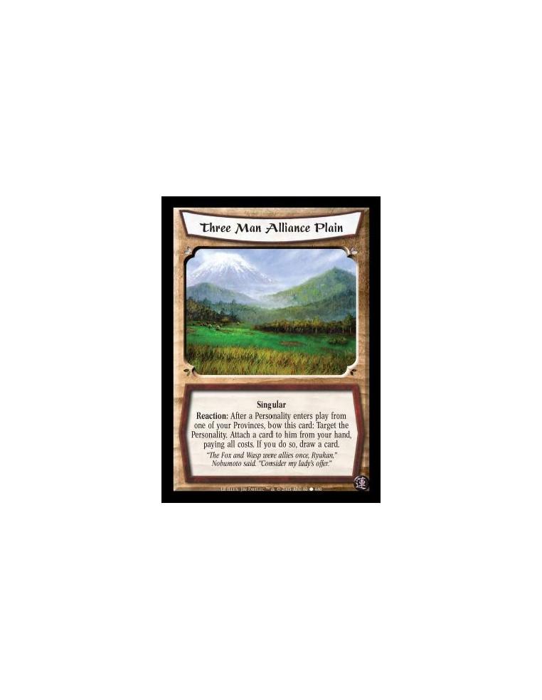 Dragon Clan • Samurai • Soul of Mirumoto Kei • Kensai(Kensai may attach two Weapons, as long as neither is Two-Handed.) Battle: Niwa challenges a target enemy Personality. He may refuse; if he does, give Niwa +3F. Give the duel's loser -3F.
