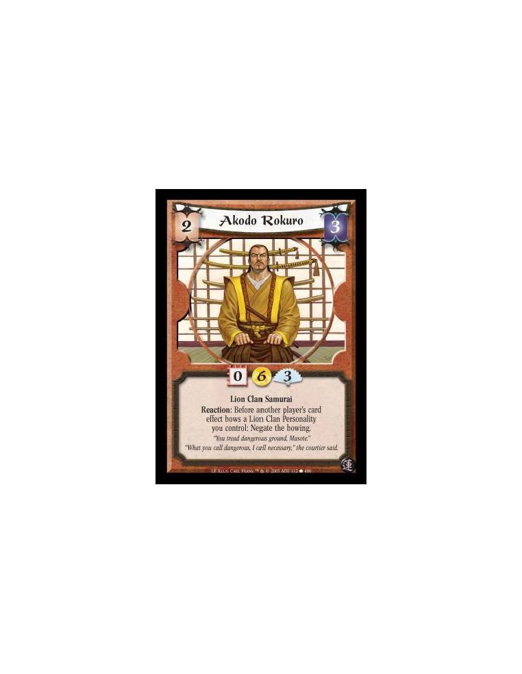 Minor Shugenja have +1C while participating in a Ritual that this Personality also participates in. (Followers cannot cast Kihos.) Battle: Bow Minor Shugenja for a Ranged 1 Attack.