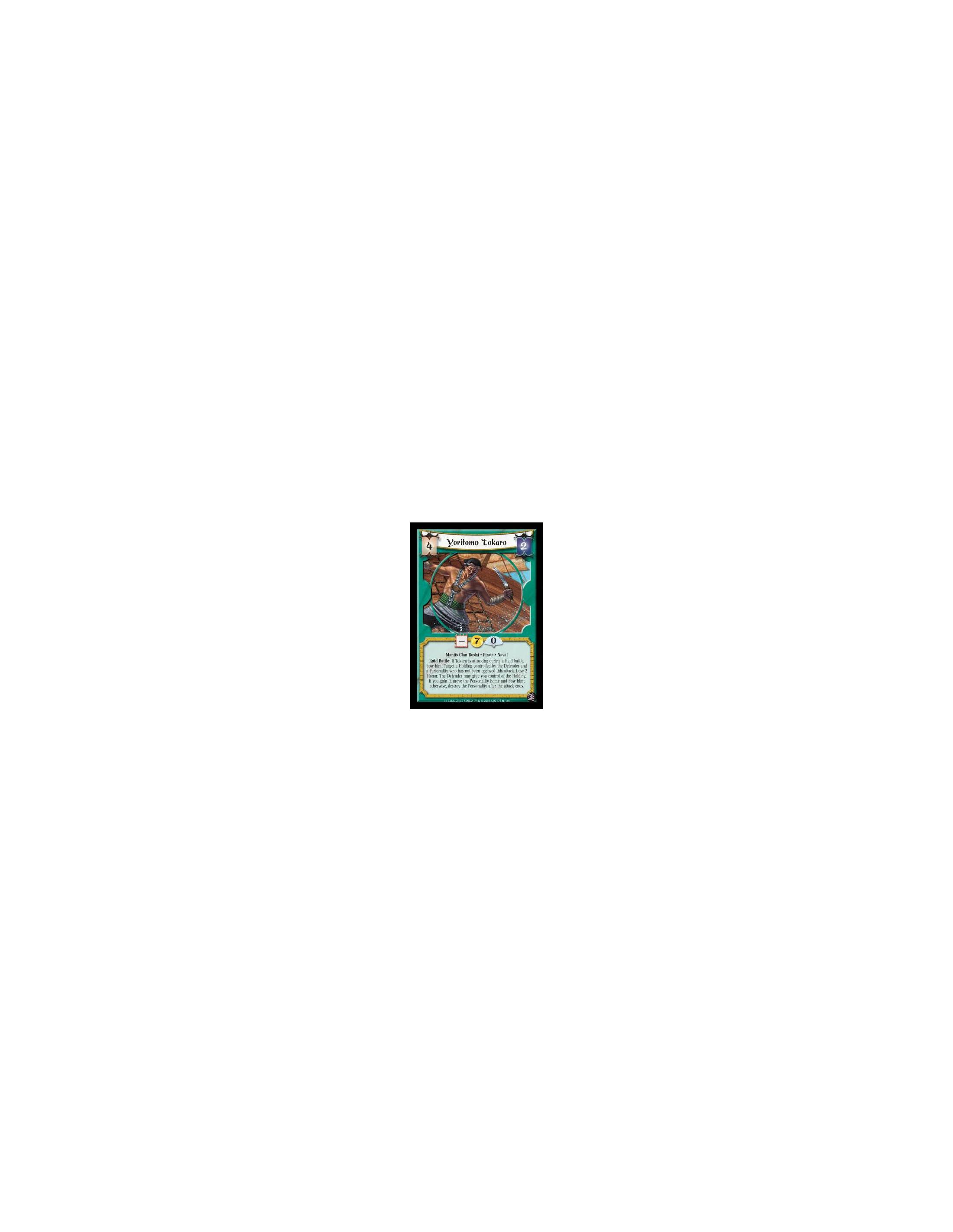 Phoenix Clan • Daimyo • Earth • Void • Shugenja • Alchemist • Loyal • UniqueBattle/Open: Target a non-unique Spell in your discard pile, or under your Stronghold: Attach it to Kurou, paying all costs. You may take an additional action to use an ability on the spell. Remove it from the game before the turn ends.