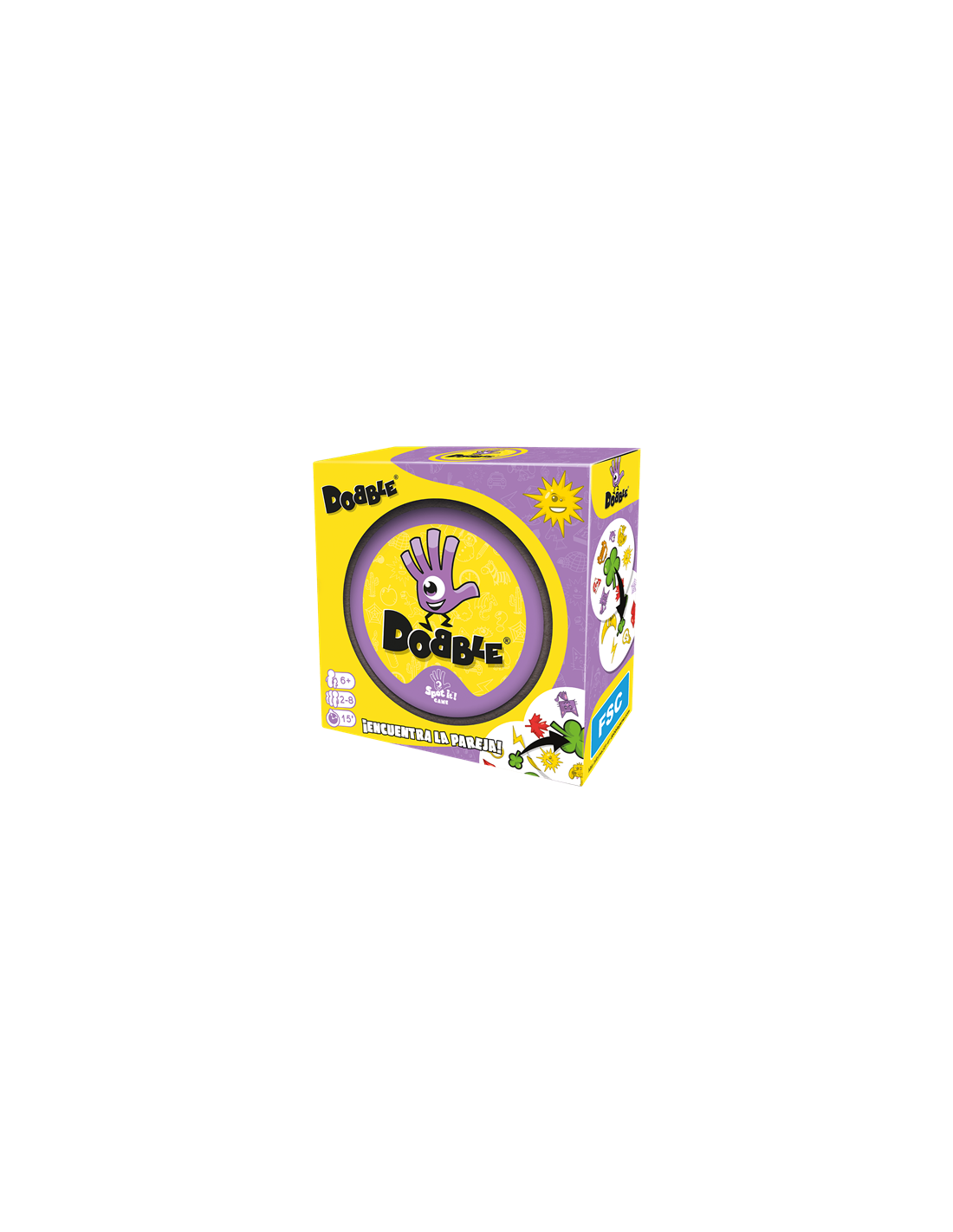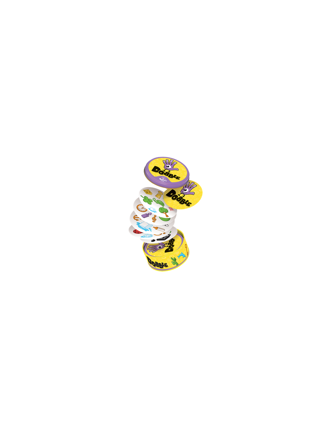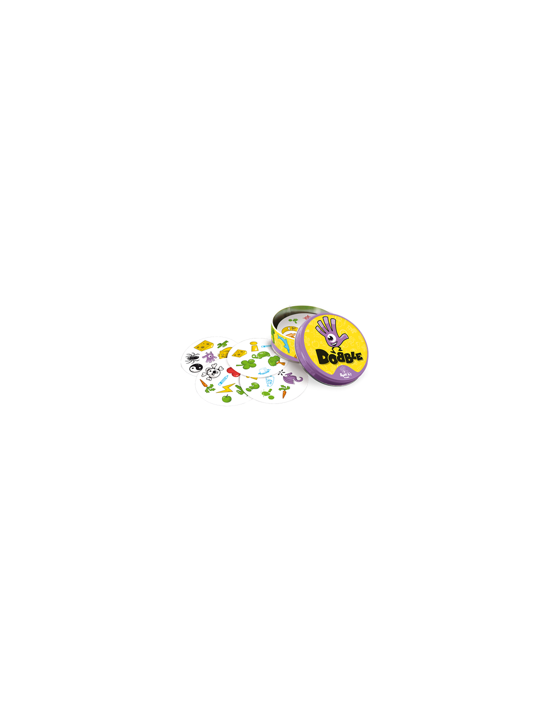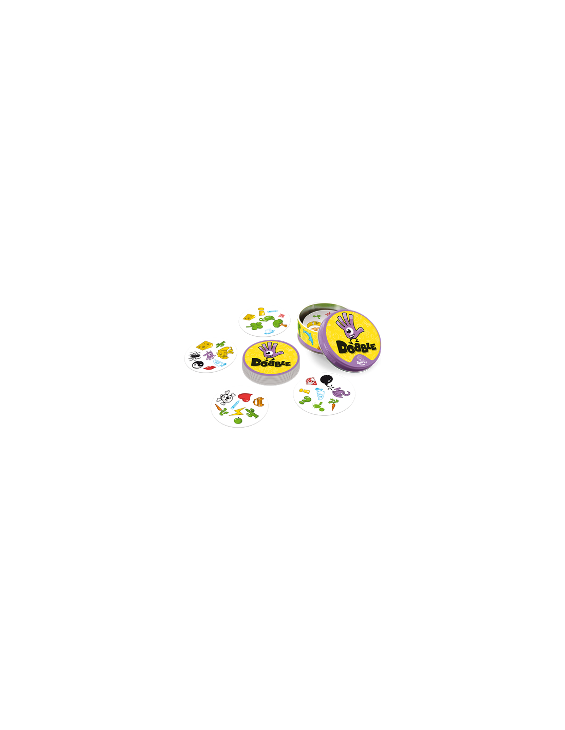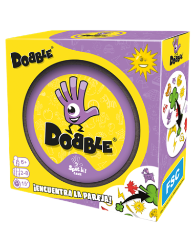 Dobble un juego con más de 50 símbolos, 55 cartas, con uno, y solamente un símbolo idéntico entre cada carta. ¿Serás capaz de descubrirlo? Busca el símbolo idéntico en dos cartas, dilo en voz alta y coger o deja una carta, según las reglas del mini-juego al que estéis jugando. Velocidad, observación, reflejos... ¡encadena todos los mini-juegos en un ambiente delirante! Componentes: 55 cartas; instrucciones