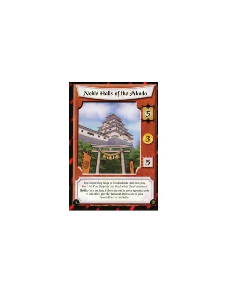 The Noble Halls of the Akodo  - You cannot bring Ninja or Shadowlands cards into play. Your Lion Clan Shugenja can attach other