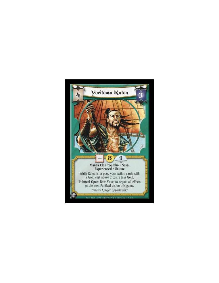 Yoritomo Katoa Exp  - Mantis Clan Yojimbo. Naval. Experienced. Unique While Katoa is in play, your Action cards with a Gold cost
