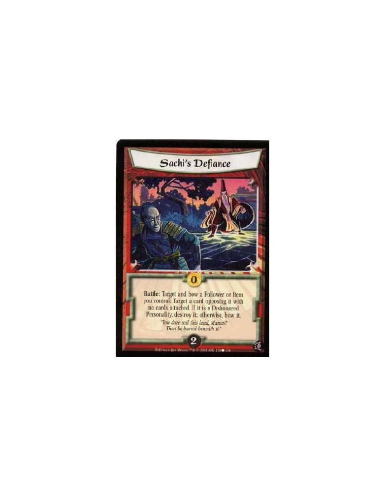 Sachi's Defiance  - Battle: Target and bow a Follower or Item you control: Target a card opposing it with no cards attached. If