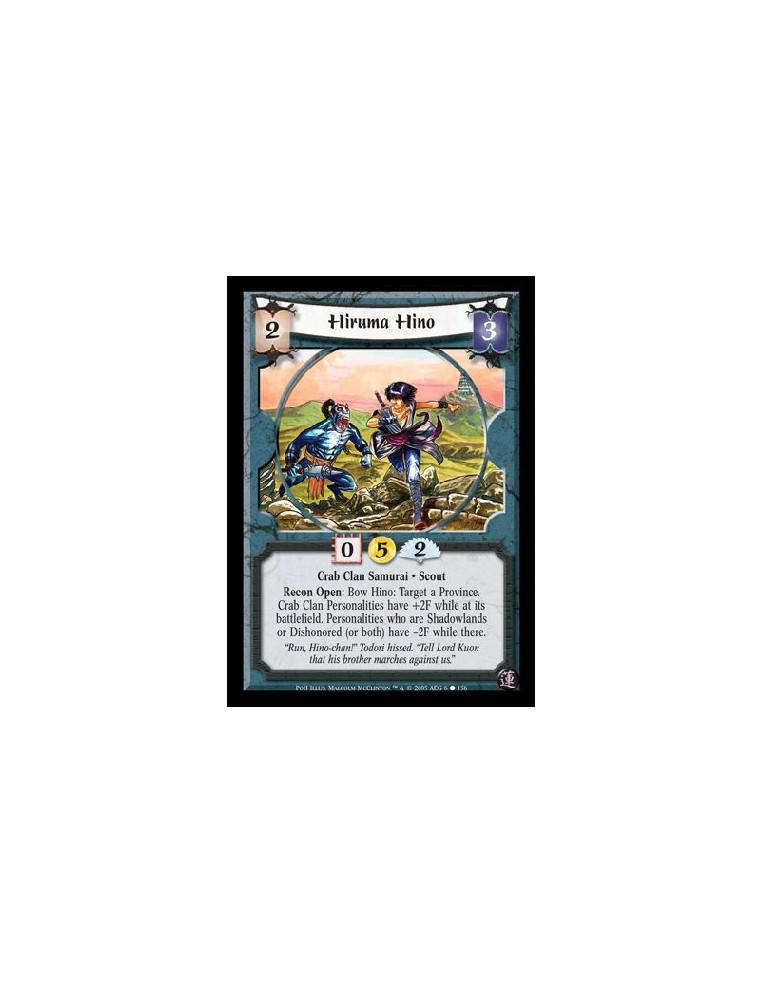 Hiruma Hino  - Crab Clan Samurai · Scout. Recon Open: Bow Hino: Target a Province. Crab Clan Personalities have +2F while at its