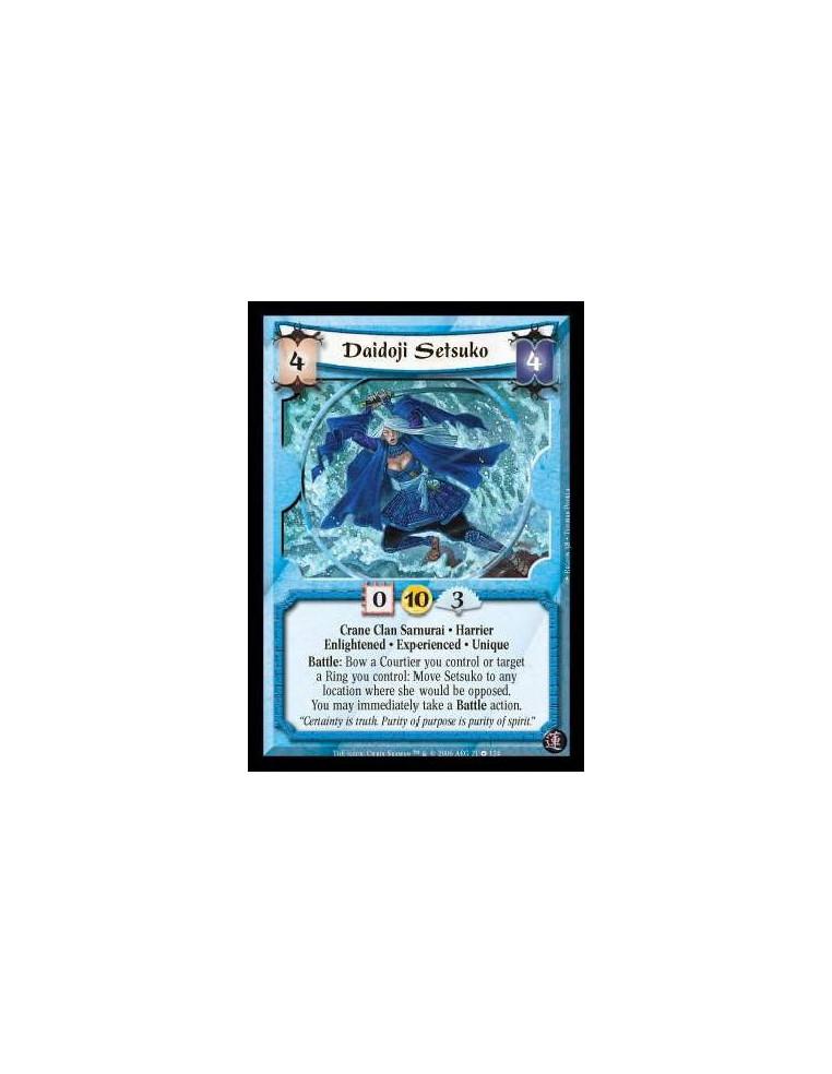Political Reaction: After a Cavalry Maneuvers Segment, bow a Courtier you control: Target up to 3 Personalities controlled by the enemy leader. He decides whether each is dishonored. Move each that this action did not dishonour to a battlefield of your choice.