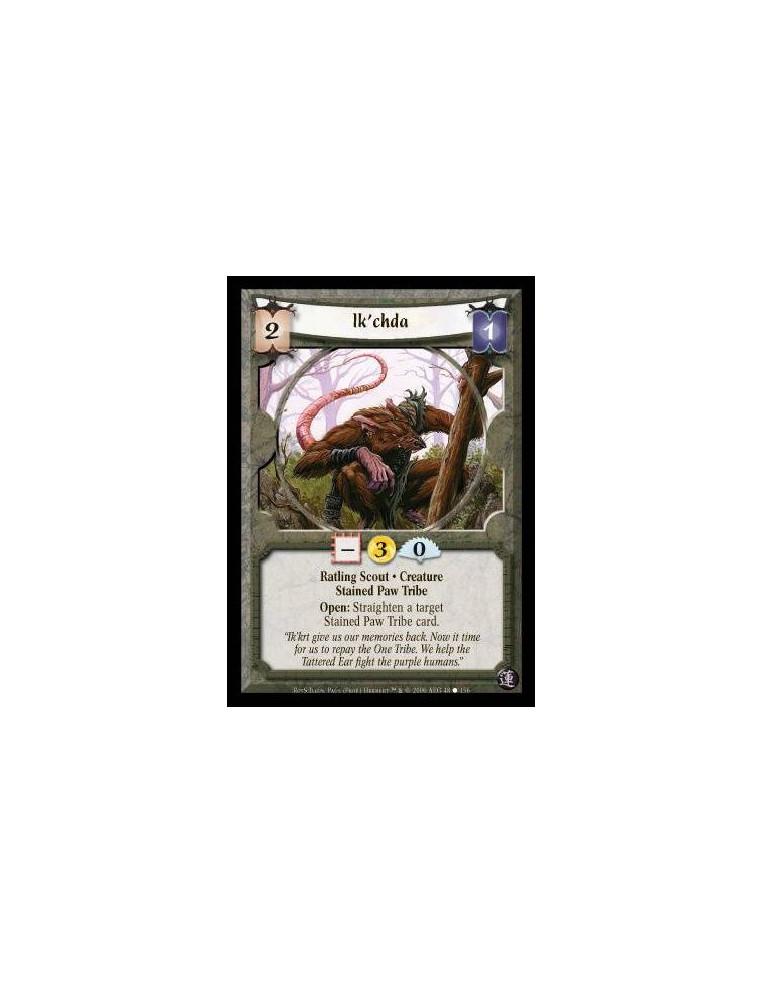 Ik'chda  - Ratling Scout · Creature · Stained Paw Tribe. Open: Straighten a target Stained Paw Tribe card.