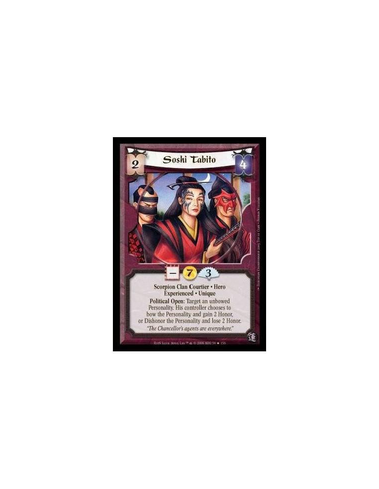Soshi Tabito Exp  - Scorpion Clan Courtier · Hero · Experienced · Unique. Political Open: Target an unbowed Personality. His con