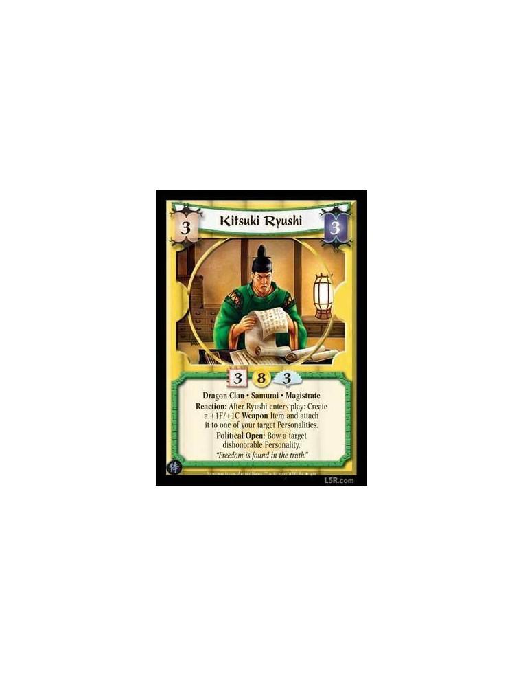Kitsuki Ryushi  - Dragon Clan · Samurai · Magistrate Reaction: After Ryushi enters play: Create a +1F/+1C Weapon item and attach