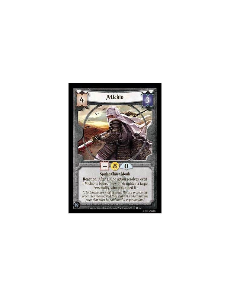 Michio  - Spider Clan · Monk. Reaction: After a Kiho action resolves, even if Michio is bowed: Bow or straighten a target Person