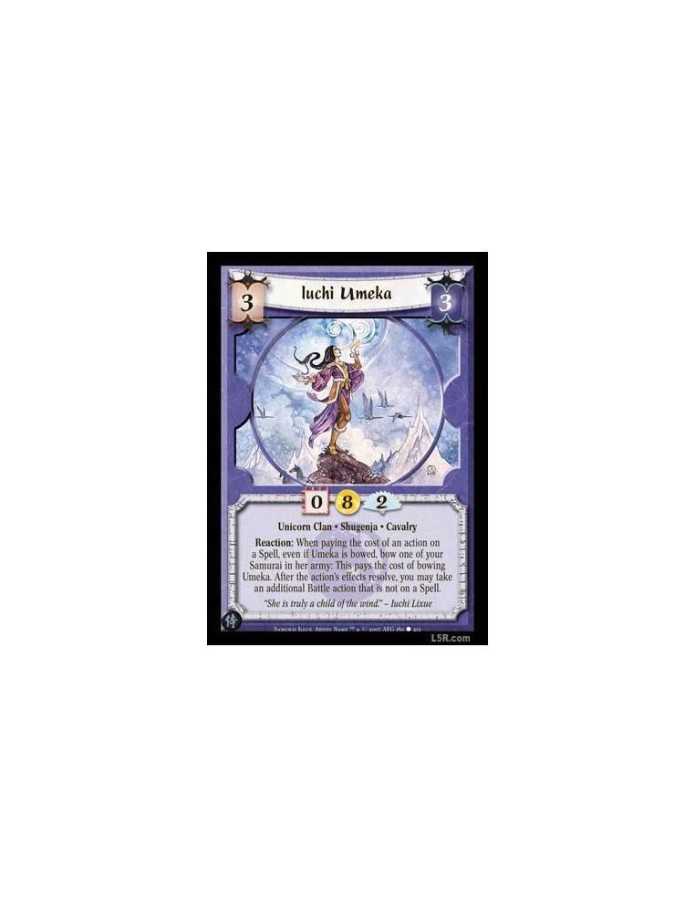 Artisan • Courtier • Cursed • Daimyo • Loyal • Unique Ikura will not attack or issue challenges, and cannot be challenged from Iaijutsu actions.Favor Political Open: Discard the Imperial Favor to make a target player lose 1 Honor.