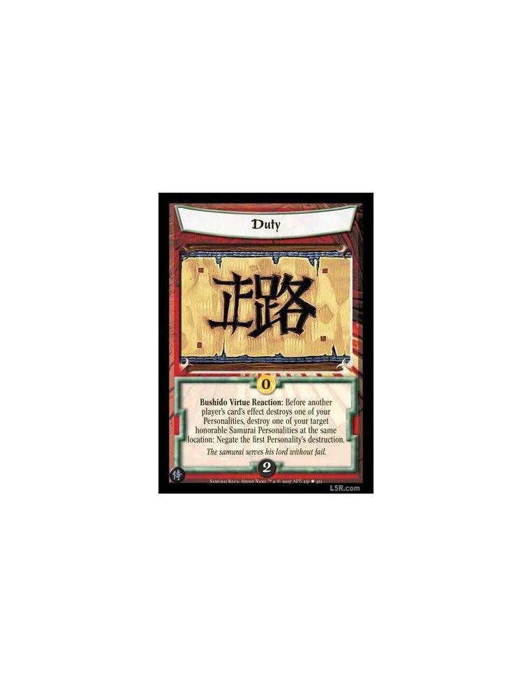 Duty  - Bushido Virtue Reaction : Before another player's card's effect destroys one of your Personalities, destroy one of your