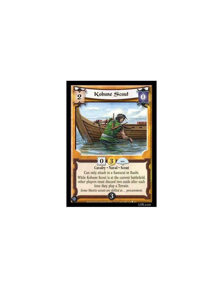 Cavalry · Naval · Scout Can only attach to a Samurai or Bushi.While Kobune Scout is at the current battlefield, other players must discard two cards after each time they play a Terrain.