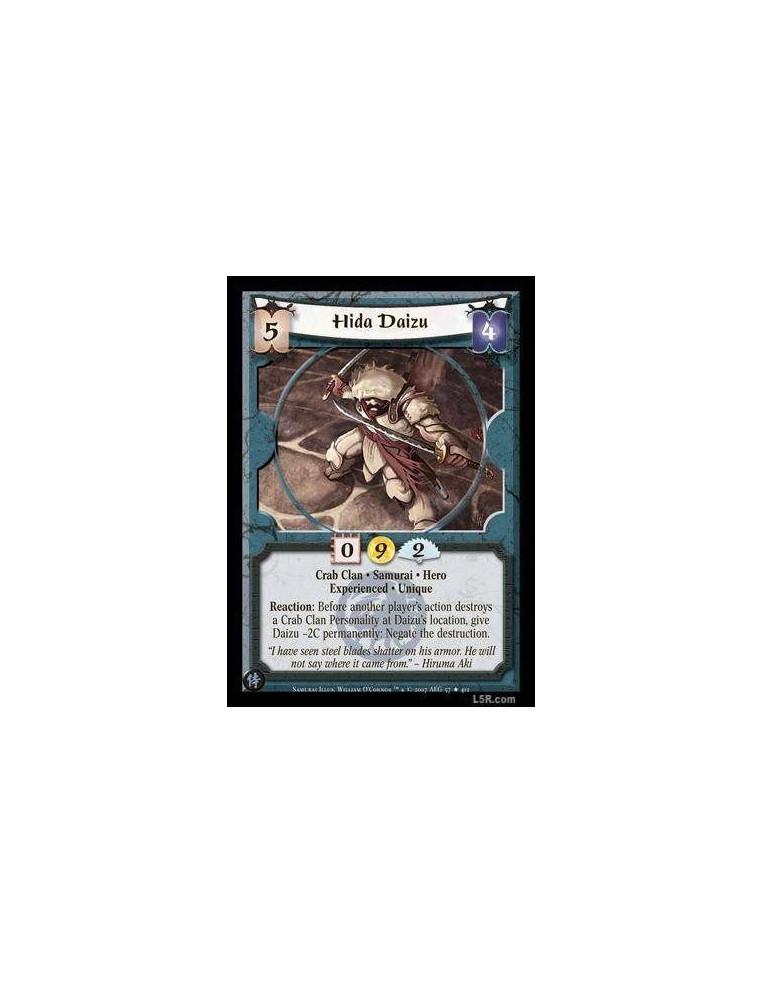 Hida Daizu Exp FOIL  - Crab Clan · Samurai · Hero · Experienced · Unique. Reaction: Before another player's action destroys a Cr