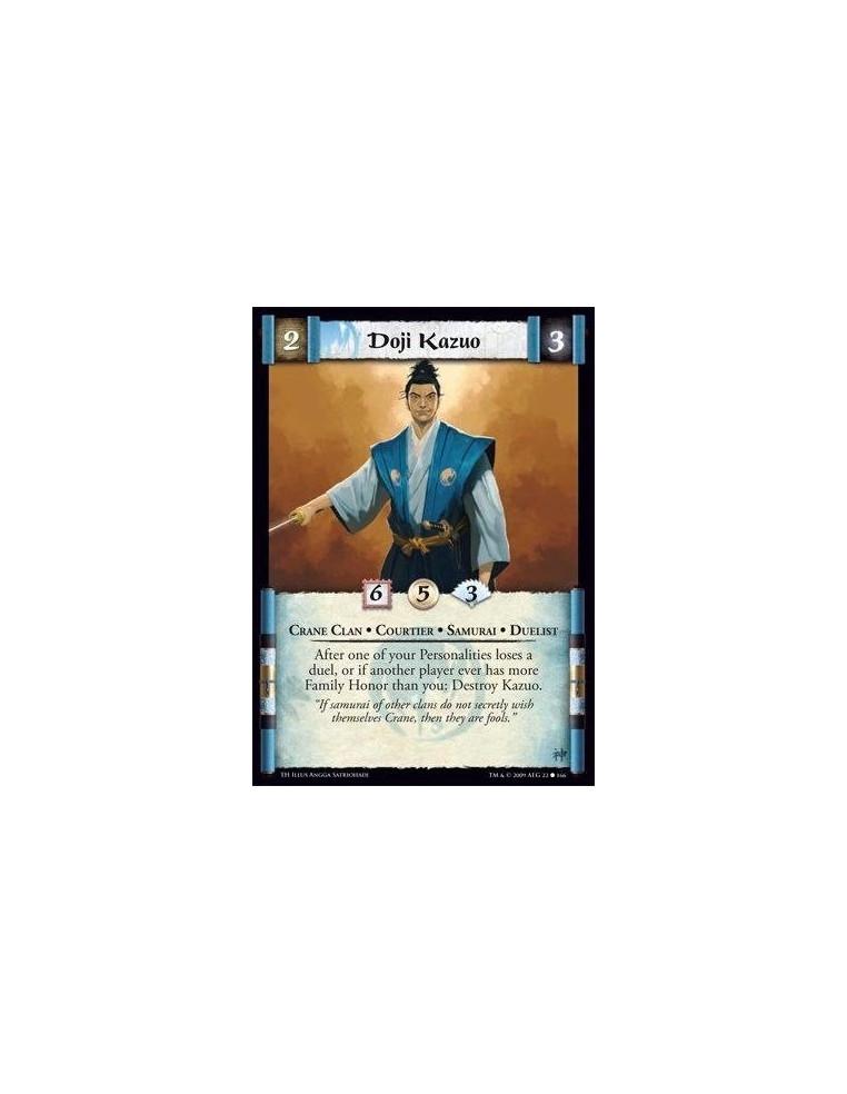 Crane Clan • Courtier • Samurai • Duelist After one of your Personalities loses a duel, or if another player ever has more Family Honor than you: Destroy Kazuo.