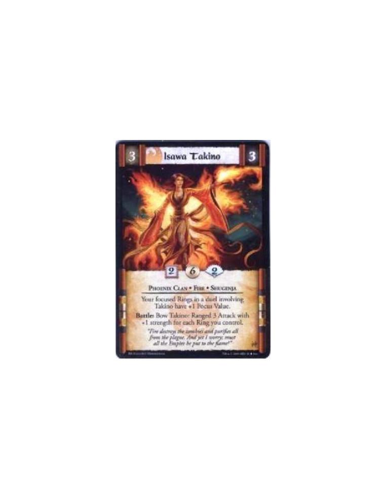 Isawa Takino  - Phoenix Clan • Fire • Shugenja Your focused Rings in a duel involving Takino have +1 Focus Value. Battle: Bow Ta