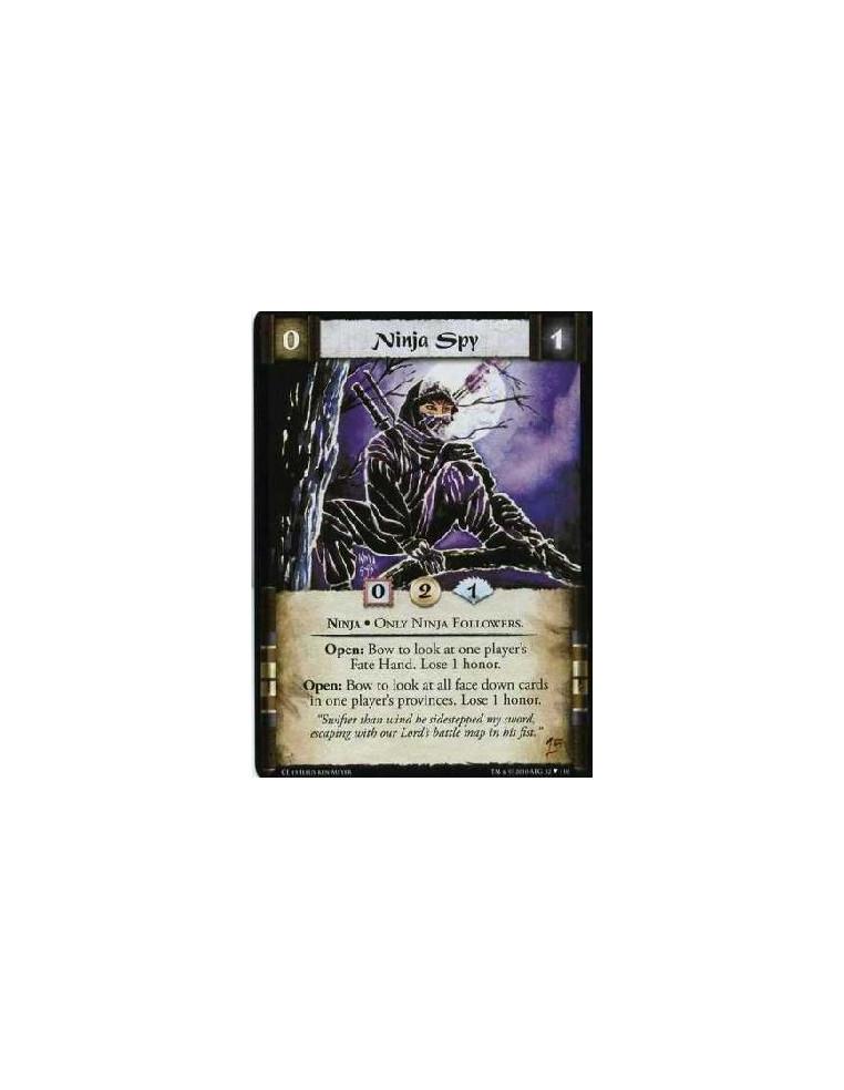 Ninja Spy  - Ninja  Ninja Followers only. Open: Bow to look at one player's Fate hand. Lose 1 Honor. Open: Bow to look at all fa