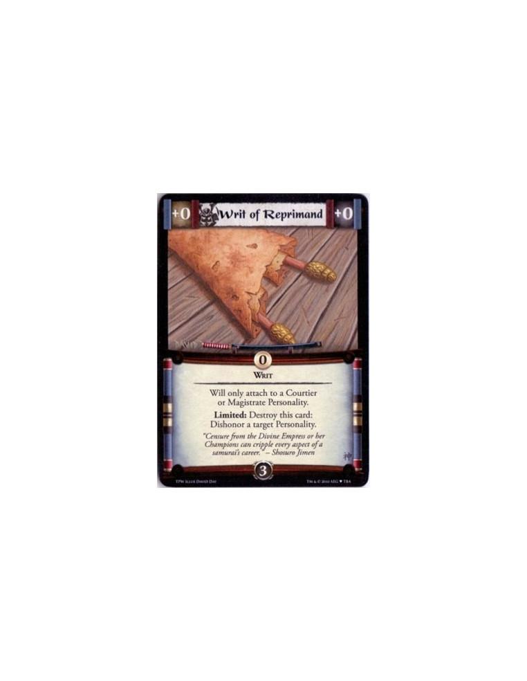 Reaction: Play when a target Shugenja attaches a Spell. The Spell's controller chooses to either destroy the Spell or bow the Shugenja Open: target a Shugenja. For the rest of the turn destroy any Spell that Shugenja casts.