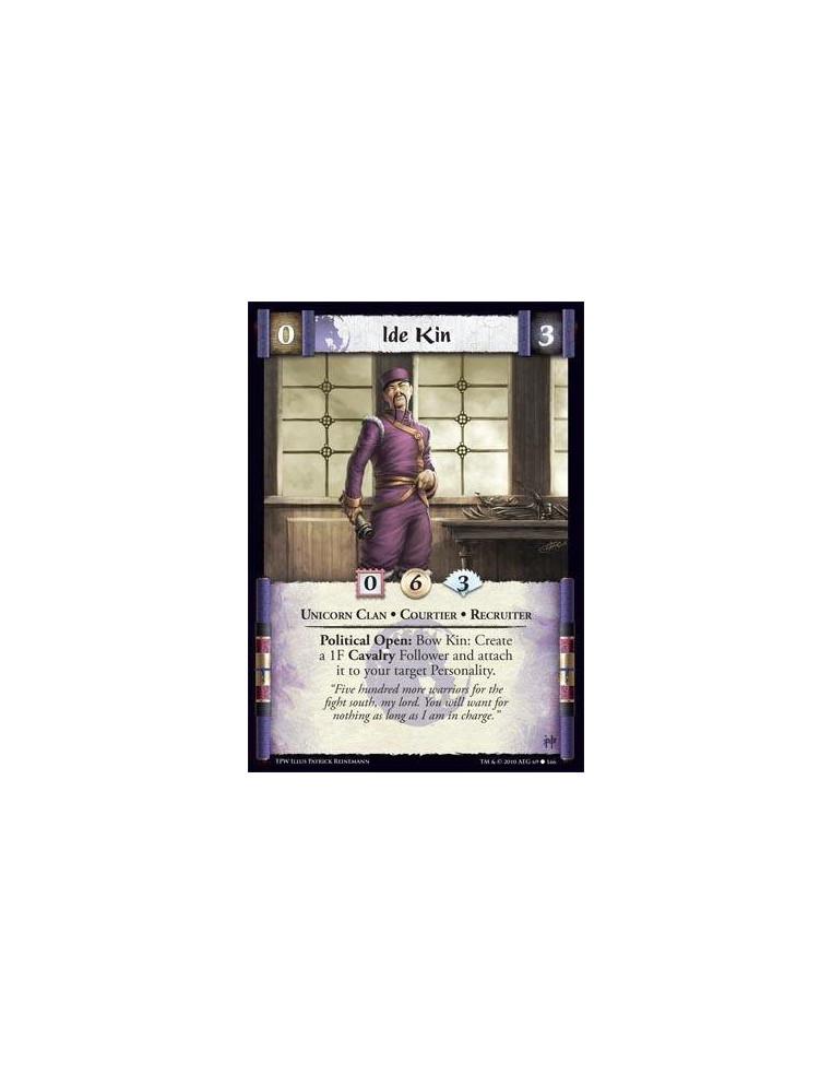 Unaligned Kshatriya · Ivory Kingdoms Ambassador · Courtier · Unique. Costs 1 less Gold if you are a Mantis Clan player. Reaction: When paying for a Fate card: Once per turn, produce 3 Gold.