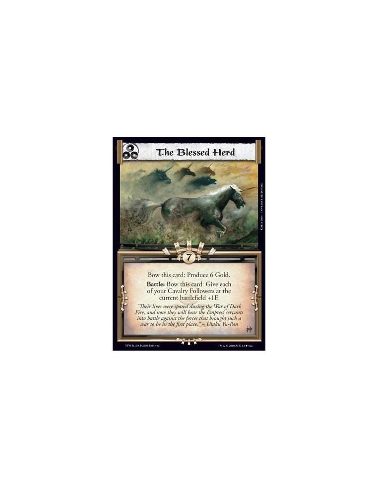 Fortune • UniqueAfter this card enters play: You may choose a Personality. While this card remains in play, battle resolution does not bow cards in that Personality's unit. Battle: If there are any enemy units at the current battlefield, choose your performing Personality and discard this card: Move him to the current battlefield. If he moved, straighten...