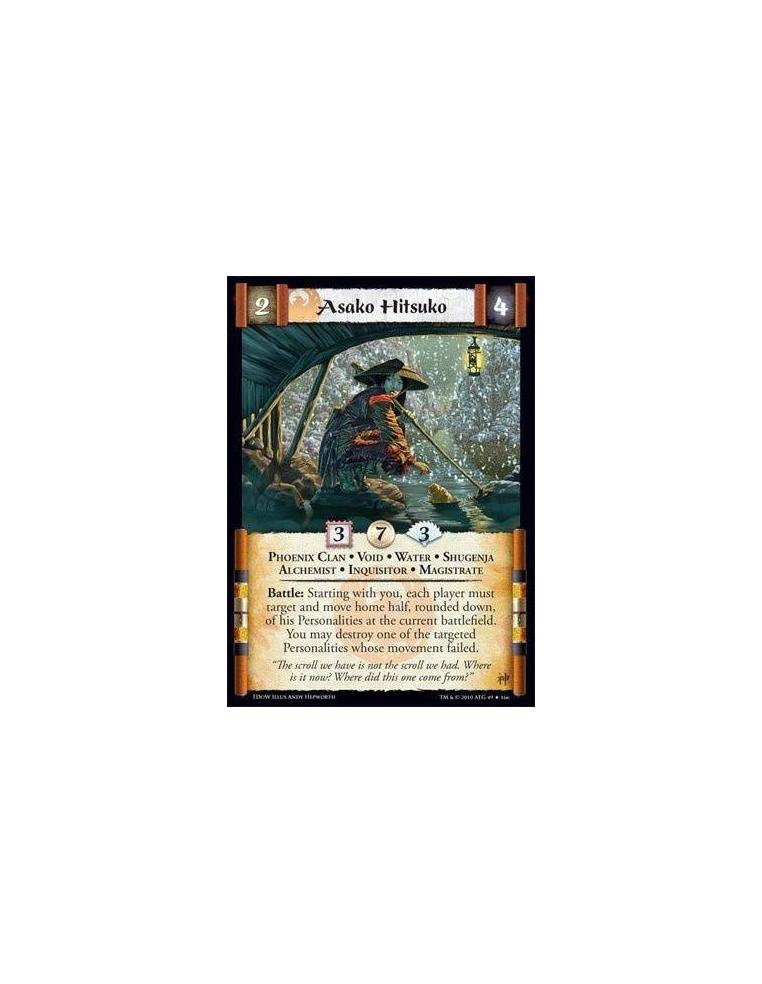 Phoenix Clan • Earth • Shugenja • Inquisitor • MagistrateBattle: Target an enemy Personality: Bow him. You may target and straighten a Personality. If the enemy Personality is Kolat, Ninja, or Shadowlands, gain 2 Honor.