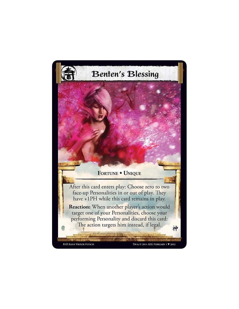 WeaponThis card has +1F while attached to a Kensai. Reaction: After engaging, choose your performing Personality at the current battlefield: Attach this card from your hand to him, paying all costs.