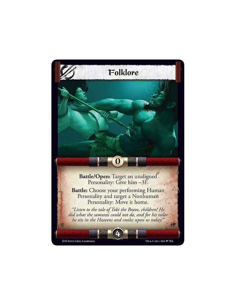 Folklore  - Battle/Open: Target an unaligned Personality: Give him -3F.  Battle: Choose your performing Human Personality and ta