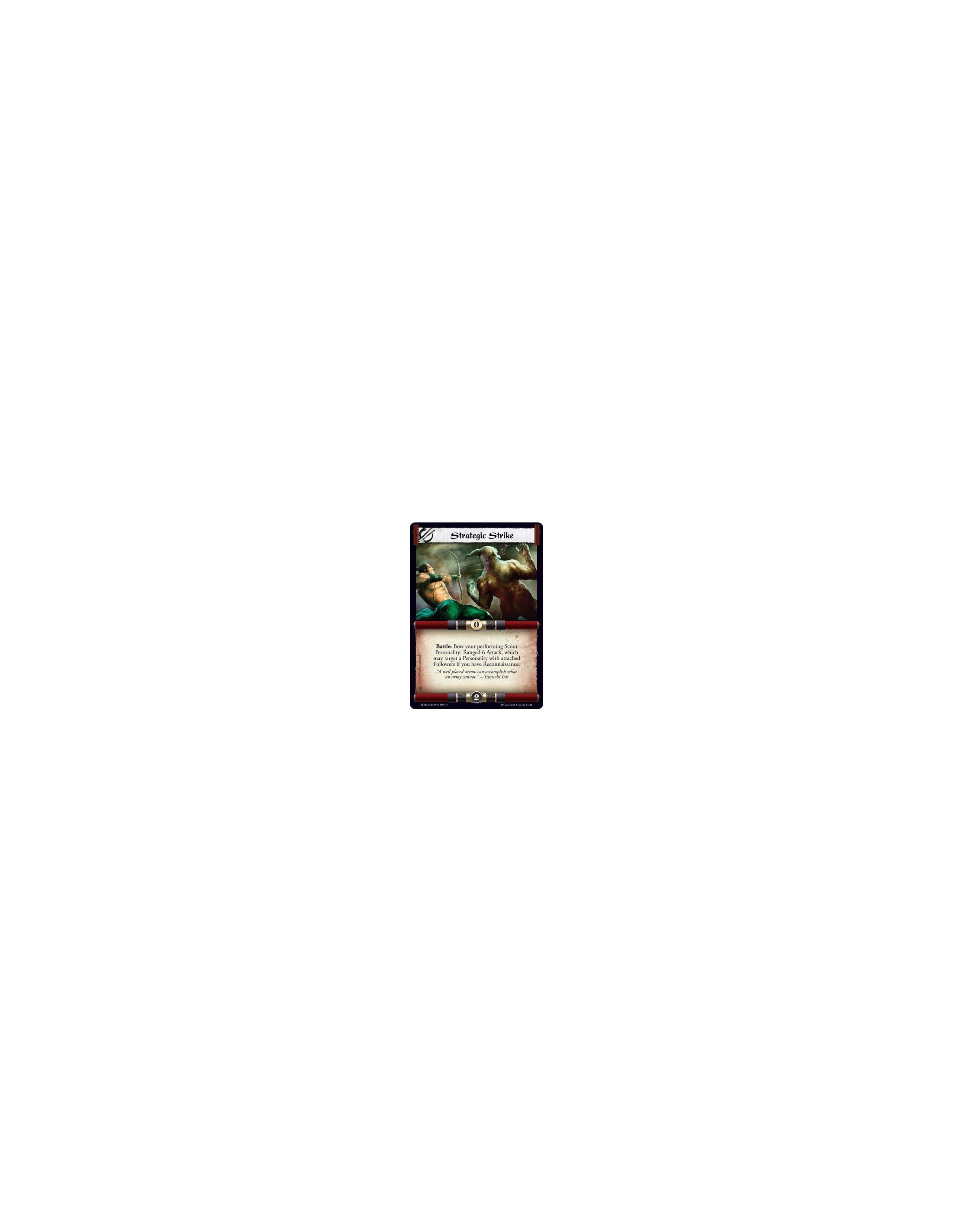 Battle: If your army has at least one unbowed Samurai and the enemy army has more unbowed Personalities than your army: The enemy leader must repeatedly target and bow a Personality in his army until this is not the case or until he can no longer do so