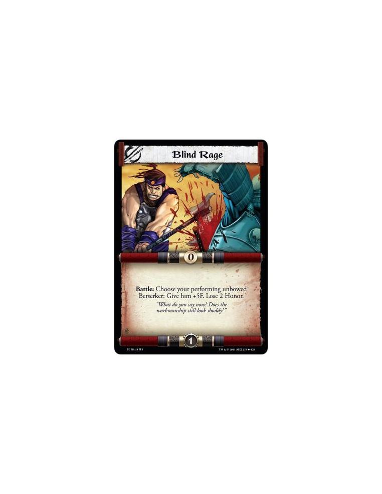 Blind Rage  - Battle: Choose your performing unbowed Berserker: Give him +5F. Lose 2 Honor.